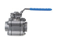 3-piece Stainiless Steel body ball valve; NPT; Class 900 sizes 1/4” to 2”, Class 600 sizes 2-1/2” to 4”; Stainless steel-2160 psi (1/4” to 2”), 1500 psi (2-1/2” to 4”); ISO 5211 mounting pad w/ square stem; PEEK ball seats; Standard latch locking handle; Conforms to ANSI 16.34, ANSI B1.20.1 thread depths, NACE MR0175; Fire Safe to API 607-6th edition; Grounded ball and stem; Standard 316 stainless steel ball and stem; Temperature range: +150° F to 500° F; Working steam pressure to 250 psi