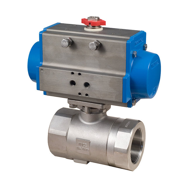 BONOMI SERIES 3100 2-WAY ST. ST. BODY 2-PIECE NPT BALL VALVE AND VALBIA PNEUMATIC ACTUATOR - 1/4" NPT / DOUBLE ACTING