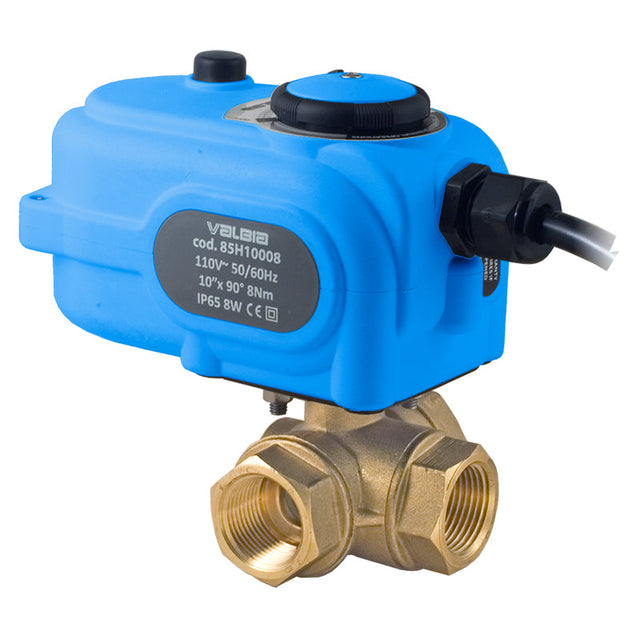 BONOMI 8E866LF WITH SERIES RB 365NLF 3-WAY LEAD FREE BRASS NPT BALL VALVE AND PLASTIC VALBIA ELECTRIC ACTUATOR